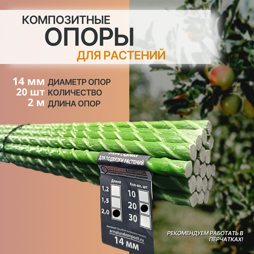 "Арматура Композит" Опора 14 мм 20 шт 2 м; композитные колышки для подвязки растений и саженцев