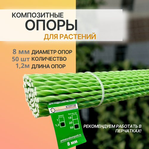 Опоры для комнатных и садовых растений D - 8 мм, 50 штук по 1,2 м композитные (колышки) "Арматура Композит"