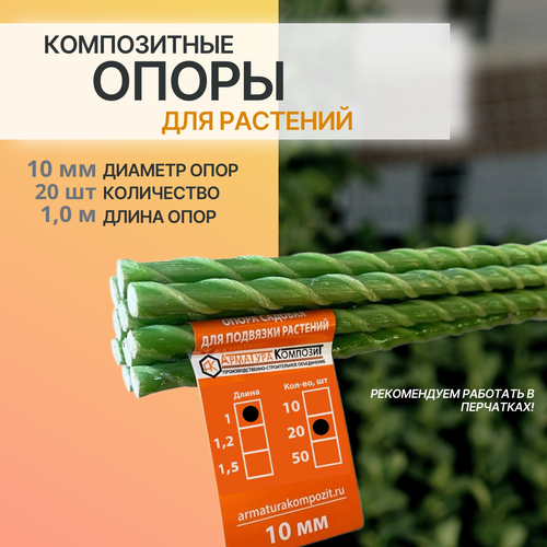 Композитные опоры для растений 10 мм 20 штук по 1 м колышки для подвязки "Арматура Композит"