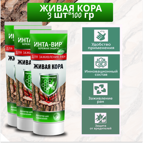 Комплект Живая кора для заживления ран Инта-Вир в тубе (100г), 3 штуки