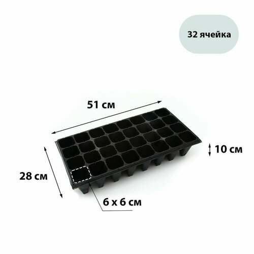 Кассета для рассады, 32 ячейки по 180 мл, чёрная, Greengo