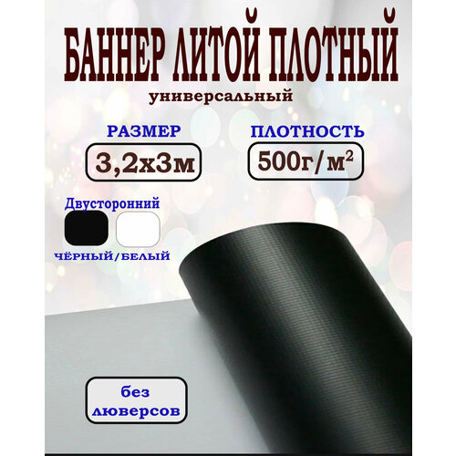Баннер черно-белый литой 3.2х5м без люверсов черный, белый