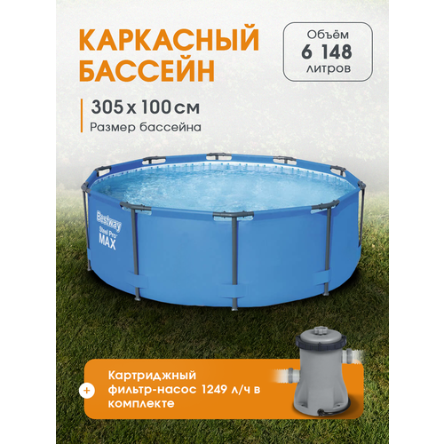 Каркасный бассейн Steel Pro Max 305х100см, 6148 л, в комплекте картриджный фильтр Bestway