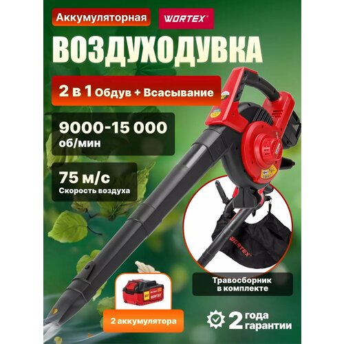 Аккумуляторная воздуходувка WORTEX BB 2536-1 D, 18В+18В, 2акб, 4 Ач