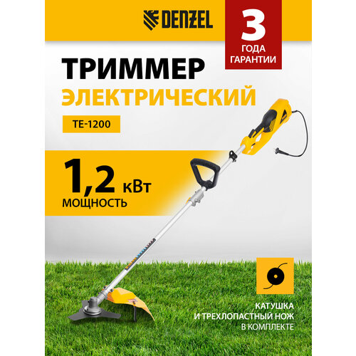Триммер электрический Denzel TE-1200 (96611), 1200 Вт, 38 см, бело-оранжевый