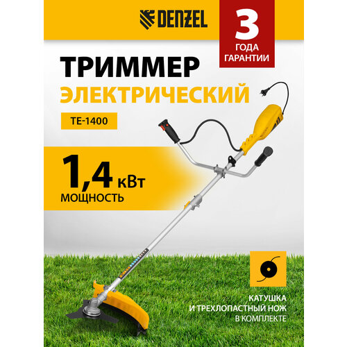 Триммер электрический Denzel TE-1400 (96612), 1400 Вт, 42 см, бело-оранжевый