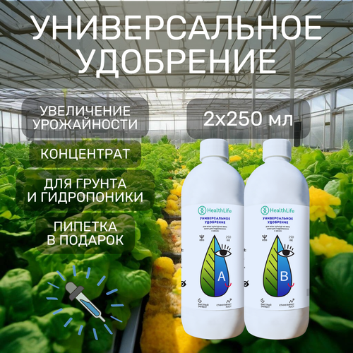 Комплекс HealthLife Универсальное удобрение А+В для растений (2х250 мл) концентрат подкормка для гидропоники и грунта