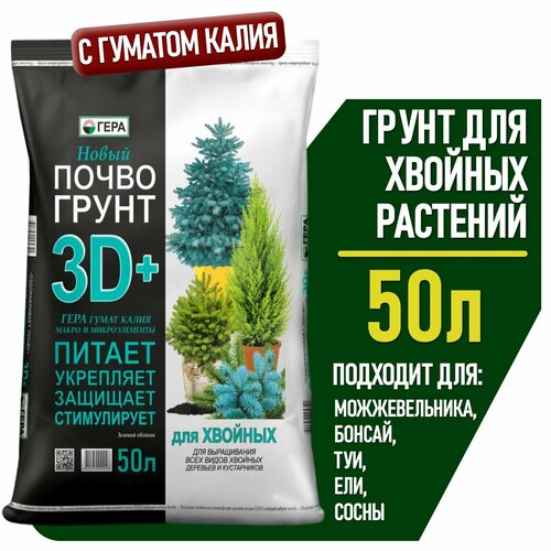 Грунт для хвойных растений и деревьев гера, земля для туи и бонсай, ели и можжевельника, елок и сосны, 50 л.