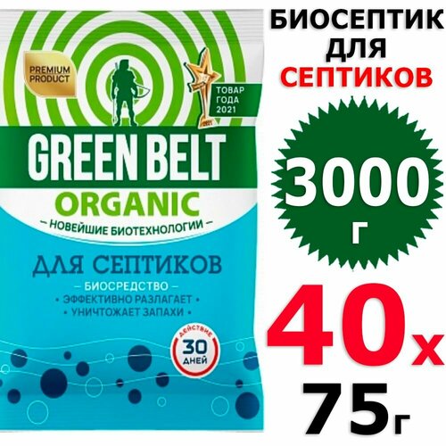 3000 г Биосептик для септиков 40 уп х 75 г (всего 3000 г), Green Belt / Грин Бэлт