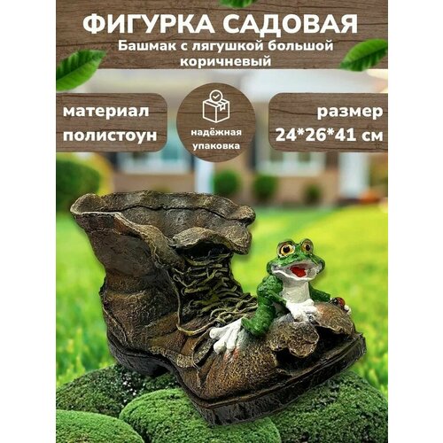 Большая садовая фигурка "Кашпо Башмак с лягушкой большой коричневый" декор для дачи, сада и огорода