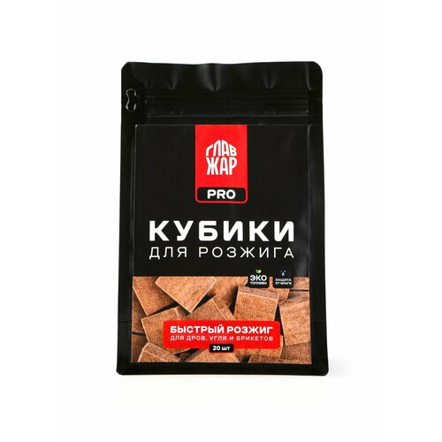 Кубики "ГлавЖар PRO" для быстрого и комфортного розжига угля, брикетов и дров, 20 штук