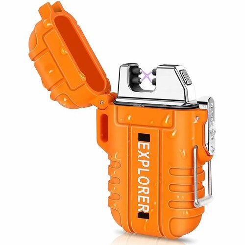 Зажигалка плазменная ветро-водозащитная USB, оранжевая
