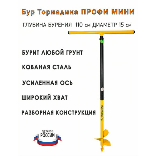 Бур садовый профи-мини Торнадика 150 мм. с мягкими ручками) / Шнековый бур ручной Профи Мини Tornadica