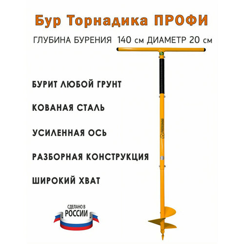 Бур Профи Торнадика с мягкими ручками, диаметр 20 см. глубина бурения 140 см./ Ручной шнековый бур Профи садовый