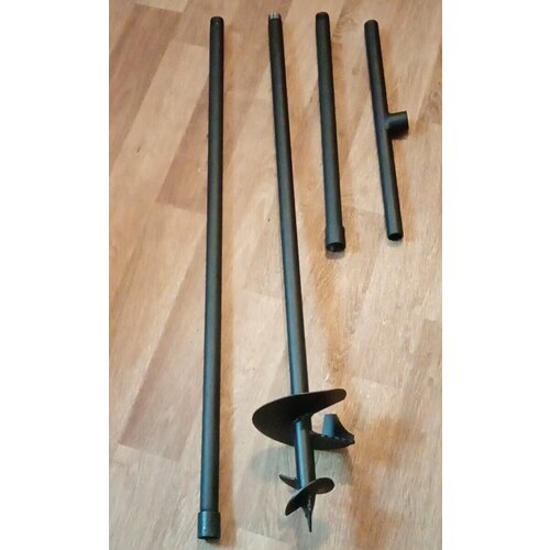 Бур садовый, D-150мм x1 метр, Т-образная рукоятка, металлический, чёрный