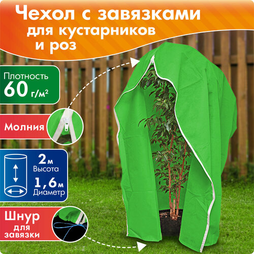 Зимний чехол для кустарников и роз прямоугольный на молнии, высота 2 м, диаметр 1,6 м