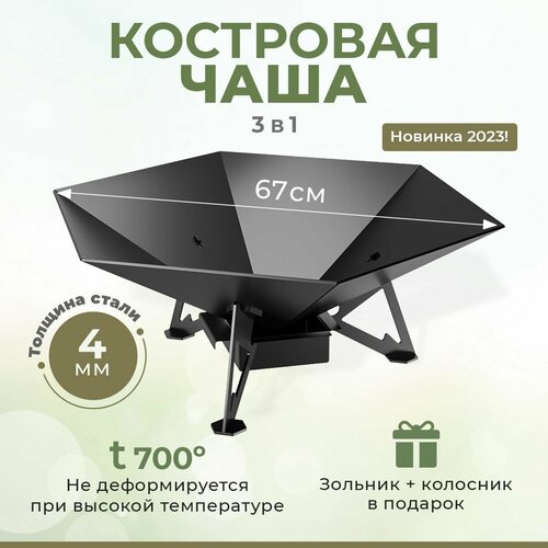 Функциональная костровая чаша из надежного листа металла 4мм в виде перевёрнутой пирамиды. Внизу имеется отверстие, которое обеспеч...