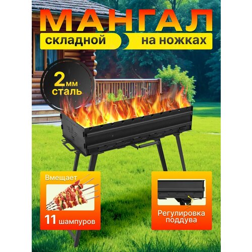 Мангал для шашлыка складной многоразовый на 11 шампуров