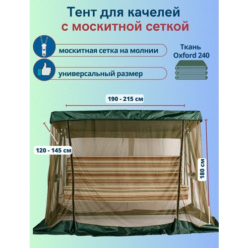 Тент для садовых качелей с москитной сеткой, универсальный размер 190-215 x 120-145 см, зеленый-хаки