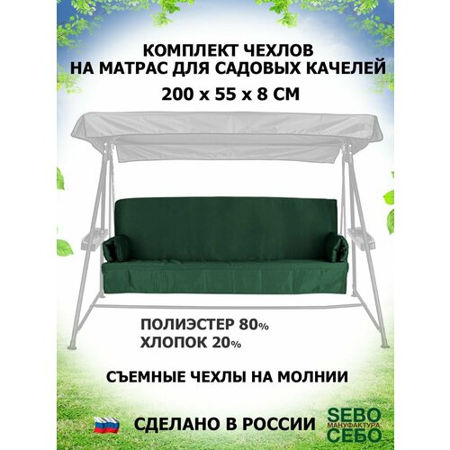 Чехол на матрас для садовых качелей SEBO комплект водоотталкивающий, 200x55х8 см, темно-зеленый