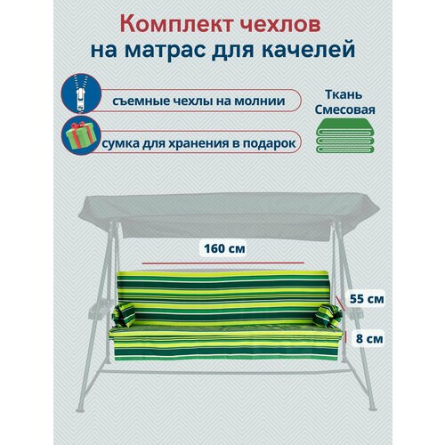 Чехол съемный на матрас для садовых качелей из непромокаемой ткани, комплект сиденье+спинка, 160x55х8 см, цвет ямайка