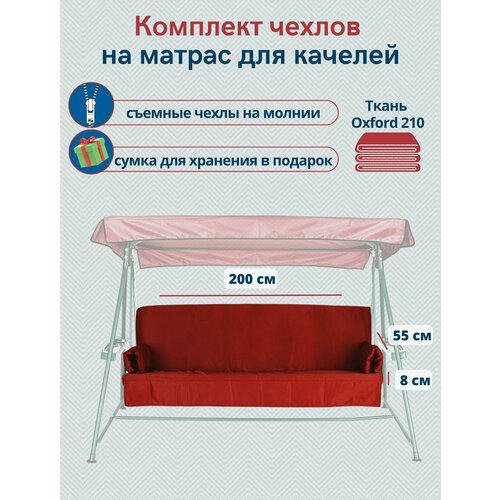 Чехол съемный на матрас для садовых качелей непромокаемый, комплект сиденье+спинка, 200x55х8 см, бордовый
