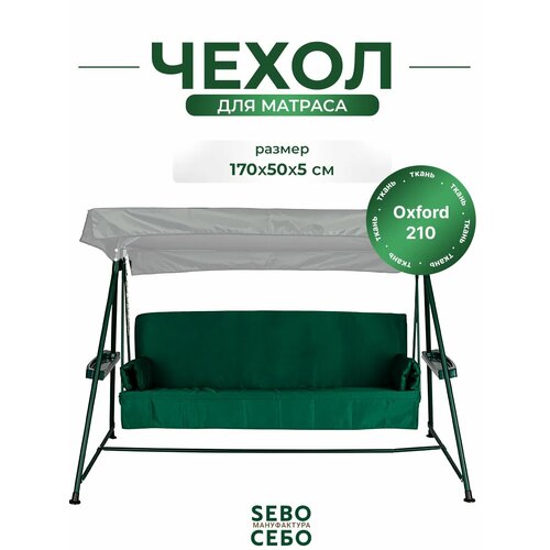Чехол съемный на матрас для садовых качелей, непромокаемый комплект сиденье+спинка, 170x55х8 см, темно-зеленый
