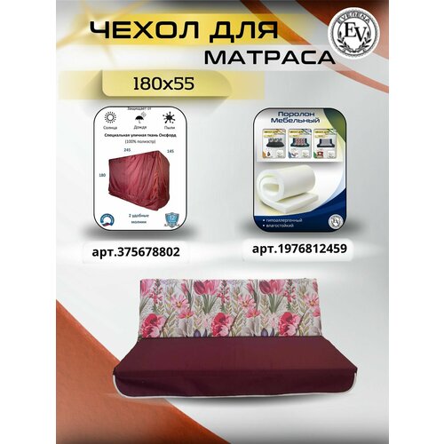Цены на Чехол съемный на матрас для садовых качелей, защитный комплект сиденье+спинка, 200x60х8 см, бордовый в г. Воронеж