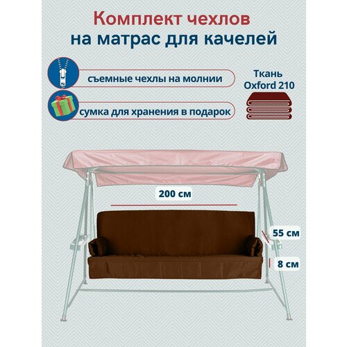 Чехол съемный на матрас для садовых качелей, защитный комплект сиденье+спинка, 200x55х8 см, коричневый