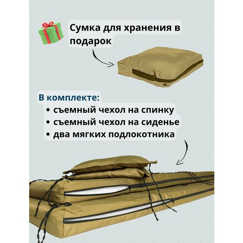 Чехол съемный на матрас для садовых качелей непромокаемый, комплект сиденье+спинка, 175x55х8 см, хаки