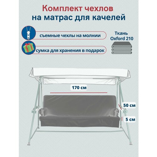 Чехол съемный на матрас для садовых качелей, непромокаемыйкомплект сиденье+спинка, 200x60х8 см, серый