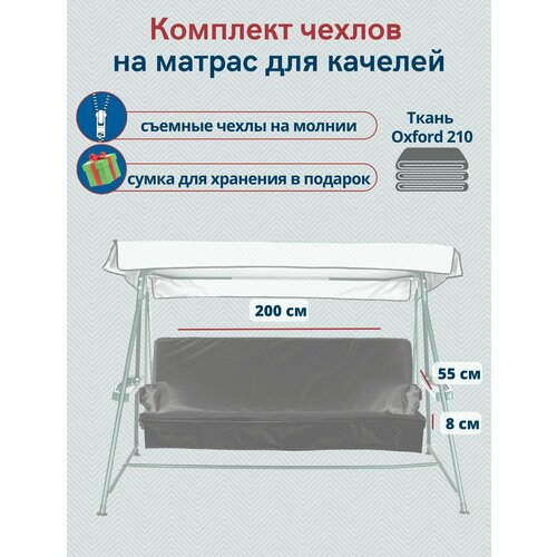 Чехол съемный на матрас для садовых качелей, комплект сиденье+спинка, 200x55х8 см, серый
