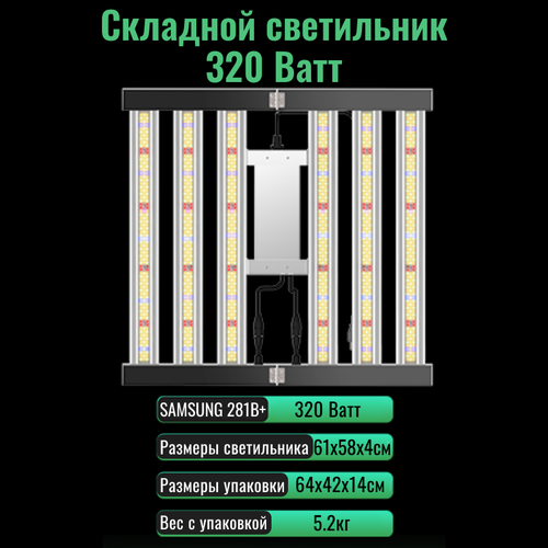 Cкладной светодиодный светильник (квантум борд) для выращивания растений 320 Ватт/ SAMSUNG 281B+, 5000К, 450-660 нм. фитолампа.