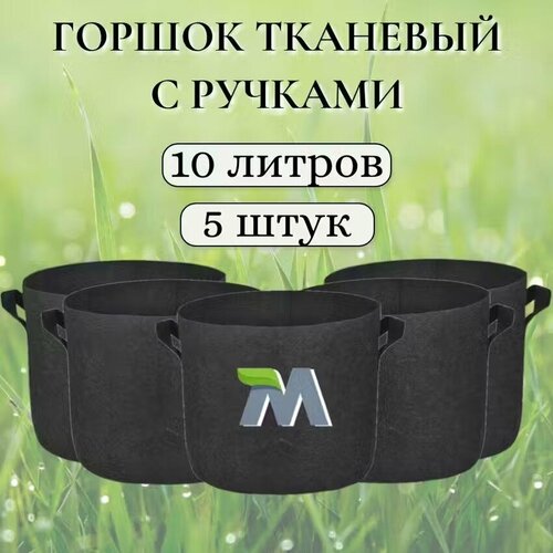 Горшок тканевый с ручками для растений и цветов. Мешок из флиса. 10 литров мобиплюс 5 штук