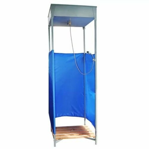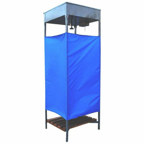 Разборный каркас кабины изготовлен из профильной трубы 30х30 мм. Каркас обтянут влагостойкой тканью-шторкой таким образом, чтобы в верхней и нижней части кабины обеспечивалась естественная вентиляция. Душевая кабина оснащена 128-литровым баком для воды. Бак изготовлен из высококачественной стали. Внутри бак обработан гальваническим цинковым покрытием. Данное покрытие, в первую очередь, исключает появление ржавчины и, самое главное, обеспечивает долговечность изделия. Такой бак легко прог