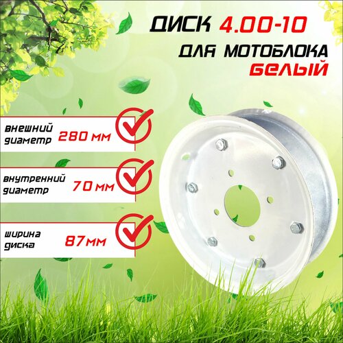 Диск колеса, для мотоблока, 4.00-10, белый/чёрный, разборный, 1 шт