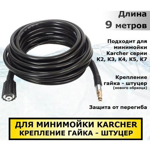 Шланг для мойки Karcher, гайка-штуцер (нового образца), 9 метров, совместим с Керхер серии K2, K3, K4, K5, K7