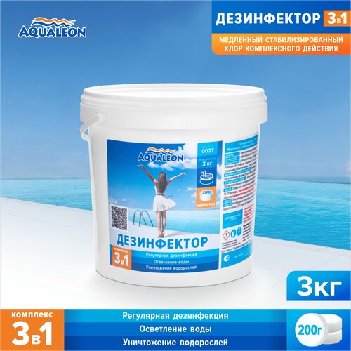 Таблетки для бассейна AQUALEON Дезинфектор МСХ КД 3 л 3 кг таблетки