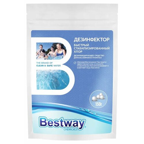 Дезинфектор Bestway быстрый стабилизированный хлор в гранулах обеззараживает дезинфицирует воду бассейна. Препарат стремительно и эффективно действует на бактерии, вирусы и грибы, разрушает органические вещества, обуславливающие мутность воды. Не содержит кальция, р