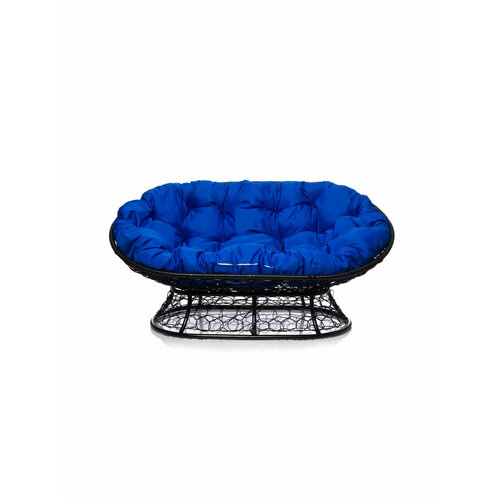 Диван "Мамасан" с ротангом чёрное / синяя подушка M-Group