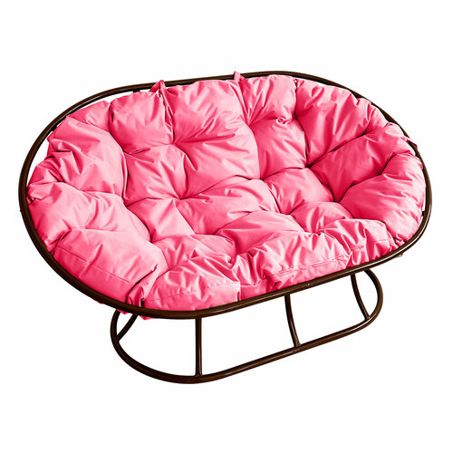 Диван мамасан без ротанга коричневое, розовая подушка