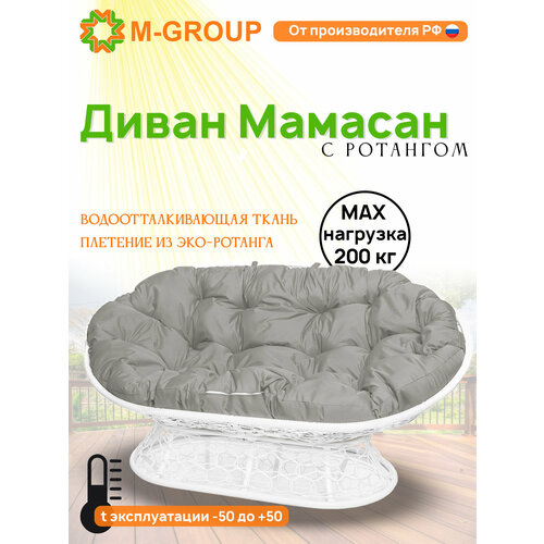 Диван мамасан с ротангом белый, серая подушка
