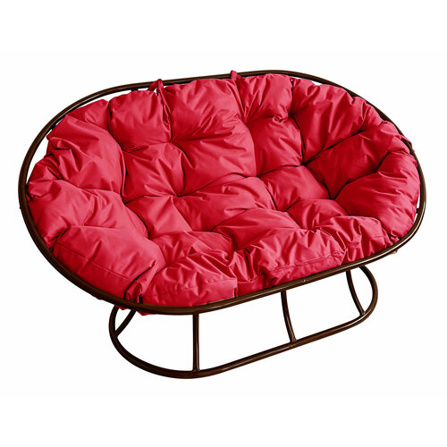 Диван мамасан без ротанга коричневое, красная подушка