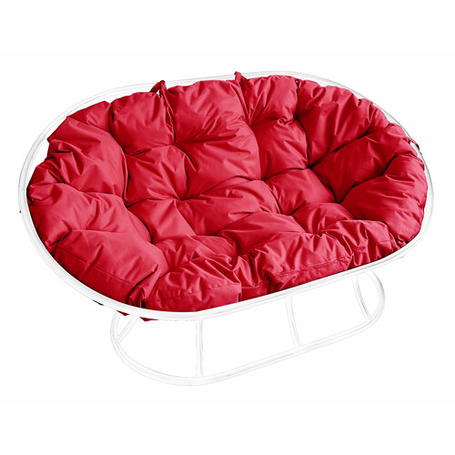 Диван мамасан без ротанга белый, красная подушка