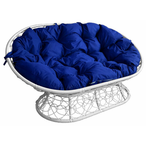 Диван "Мамасан" с ротангом белое / синяя подушка M-Group