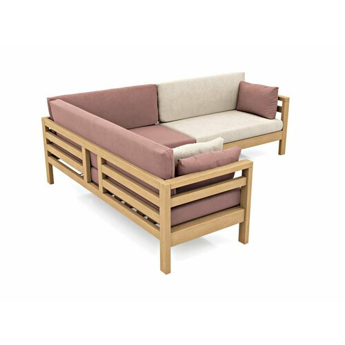 Диван угловой садовый Soft Element Бонни левый, велюр, массив дерева, дачный, в баню в комнату отдыха, на терассу, на веранду