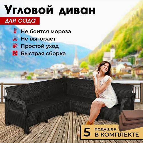 Диван садовый Альтернатива Ротанг угловой 200x200x79 см, мокко ДиванУ