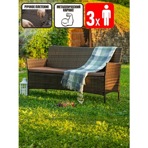 Диван трехместный из искусственного ротанга Киото, для дачи и сада, шоколад