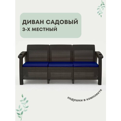 Диван садовый, 3-х местный, 188x70x79 см, мокко (с темно-синими подушками)