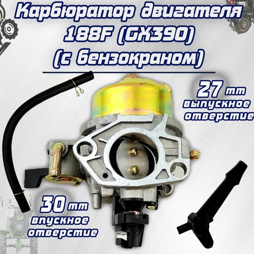 Карбюратор для мотоблока с двигателем 188F (GX390) в сборе с бензокраном